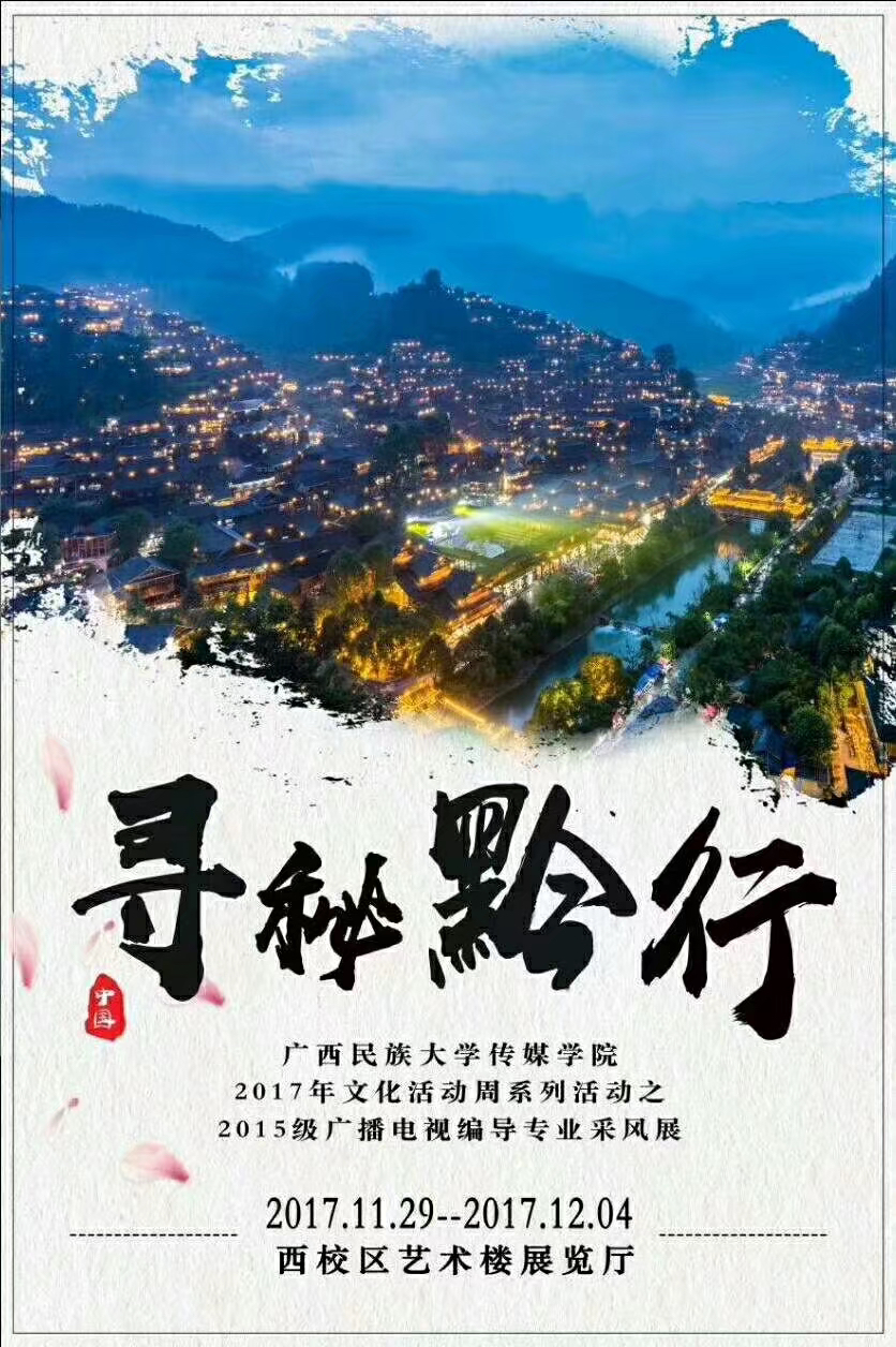11月29日至12月4日,传媒学院2017年文化活动周系列活动之一,2015级广播电视编导专业“寻秘黔行”采风作品在西校区艺术楼展览厅展出,欢迎各位同学参观学习。
