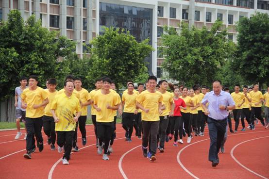 校长带领师生跑步