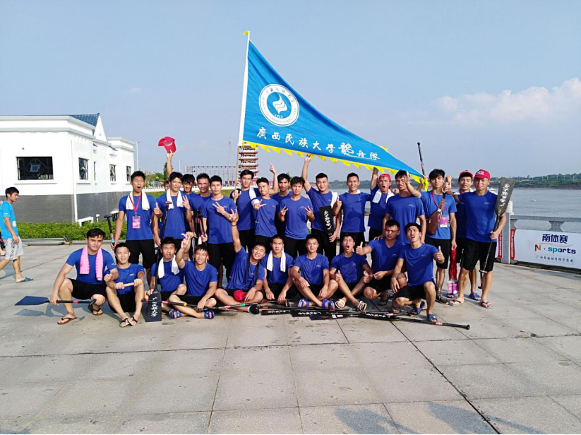 粽子的香味还在嘴边回味,龙舟的呐喊声还在耳边回环,屈原的故事一遍又一遍地流传,经久不息。在庆祝广西壮族自治区成立60周年·广西龙舟系列比赛(平南站)中,他们身着蓝色短袖,手持划桨,在22人300米竞速赛上获得第七名。他们就是广西民族大学龙舟队。
