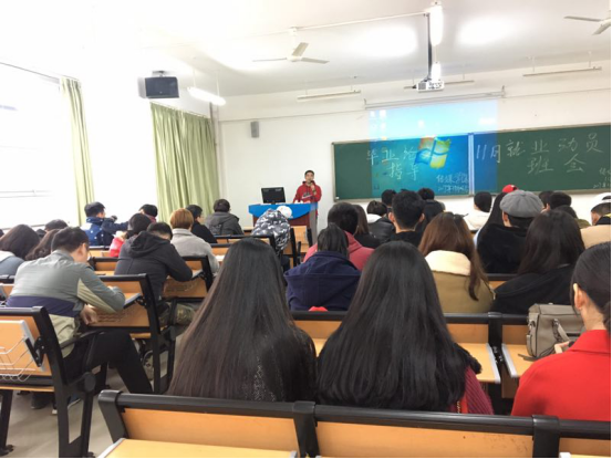 讲座分为求职目标、准备及渠道;简历的制作、面试、分享经验与练习四大部分。同时,召开毕业论文指导班会。